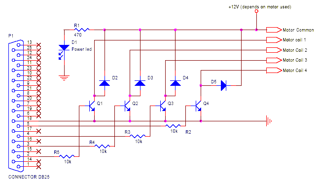 Nos lares a automação pode começar pela irrigação de jardins, controle de iluminação, simulação de presença, controle de guarita e acionamento de portões entre outras possibilidades que variam com imaginação e as necessidades de cada um. Já nas empresas existem necessidades mais óbvias como o próprio controle de guarita, fazendo identificação de funcionários e marcação de entrada e saída vinculadas à folha de ponto. A contenção de gastos com energia elétrica mediante o desligamento de equipamentos como aparelhos de ar-condicionado e de luzes, que alguém tenha esquecido ligados durante a noite, por meio de sensores de presença pode ajudar a baixar significantemente a conta de energia elétrica. Outra opção atraente de automação é o controle de câmaras de vigilância. IRRIGAÇÃO DE JARDINS A irrigação eficiente de jardins se pode obter mediante o uso de um dispositivo medidor de índice pluviométrico em dado período que enviará dados ao sistema de acionamento do mecanismo de irrigação. Relês ligados aos terminais da porta paralela manterão acionadas as torneiras ou bombas de irrigação enquanto suas bobinas forem energizadas. Cada qual poderá ser acionado independentemente. A quantidade de água, o horário e o tempo de irrigação podem ser devidamente controlados. Inclusive dados estatísticos podem ser armazenados nesse processo. Para tanto, são necessários sensores para medir o nível de água no recipiente do dispositivo medidor de índice pluviométrico num dado período. Trata-se de uma implementação simples, não muito precisa, pois sofre com as alterações de temperatura e pressão. Contudo, neste caso, não se trata de uso crítico e o dispositivo cumpre bem seu papel. ILUMINAÇÃO O horário de acendimento de lâmpadas pode ser controlado para evitar desperdício. Serve também para quem quer simular presença em casa quando viaja. O que poderá ser feito até pela Internet. Uma implementação simples pode controlar pelo menos dez chaves com o uso de relês ou transistores de potência de uso geral ligados à porta paralela. Sempre lembrando que é imprescindível o uso de resistores e diodos de proteção. Até mesmo o controle de luzes rítmicas do tipo das usadas em discotecas pode ser construído com esses componentes. Nesse último caso, será necessária alguma programação adicional que trate, inclusive, da conversação do software tocador de música com o controlador de automação. CÂMARAS DE VIDEO É comum se encontrar duas ou mais câmaras de vídeo estáticas na vigilância de salas, quintais, etc. Essas câmaras, por mais bem posicionadas que possam parecer, quase sempre deixam alguma parte do ambiente sem varredura. O uso de câmaras móveis, com plataforma multi-eixos pode se apresentar como uma solução mais atraente. Os custos não se elevam muito e elas podem ter o tempo de varredura e o movimento aleatórios ou, ainda, permitir a interação humana por controle manual no computador via teclado, mouse, joystick ou outro tipo de controle que o executor da automação possa vir a projetar. A partir de mecanismos reaproveitados de aparelhos de CD-ROM se pode criar uma plataforma controlável com pelo menos dois eixos para câmara de vídeo. Esta poderá ser operada por um programa simples no computador, mas também permite a interação humana a longa distância através de redes de computadores. Significa dizer que se pode controlar uma câmara dessas de qualquer parte do mundo pela Internet. Em uma aplicação mais simples, a câmara pode ser do tipo WebCam que, dependendo do modelo, custa apenas algumas dezenas de reais. GUARITA O sistema de controle de guarita pode ser feito com equipamentos já obsoletos como um PC 486. Este possui capacidade de sobra para armazenamento de marcações de funcionários, controle de acionamento de portão. Com um pouco mais de aperfeiçoamento e mediante o uso de um computador também obsoleto, porém com um pouco mais de capacidade, se pode até fotografar aqueles que não se identificarem como funcionários, ou seja, os visitantes. Isso seria relevante para a segurança da empresa e até para consultas estatísticas. As marcações de entrada e saída de funcionários podem estar diretamente vinculadas à folha de pagamento – está claro que aí se necessita de apoio profissional de programação. PROCEDIMENTOS O presente estudo enfatiza o uso da porta paralela existente nos microcomputadores por duas razões obvias: ela é mais fácil de se programar e controlar com rapidez e segurança e, principalmente, porque ela já acompanha os microcomputadores desde que foi criada pela IBM para usar impressoras Centronics. Os bits são mais facilmente controlados permitindo o acionamento de relês, motores de passo e captação de estado de sensores. Para o acionamento de motores de passo há circuitos integrados dedicados como o CD4017, mas também se pode construir cada driver[3] a partir de transistores. É recomendado o uso de diodos protetores e, no caso de usar computadores novos e caros para controle, dependendo do tipo de dispositivo que se queira controlar, é melhor usar acopladores ópticos antes dos drivers para isolar o computador do dispositivo controlado. O esquema eletrônico 1 mostra o circuito para controle de um motor de passo e serve para todas as aplicações, sugeridas neste artigo, que requeiram esse tipo de motor. Através da porta paralela se pode controlar dois motores de passo e ainda sobra recurso para envio e recebimento de outros dados. É possível multiplexação, mas, como não é necessária para as aplicações citadas, ela não será abordada aqui.